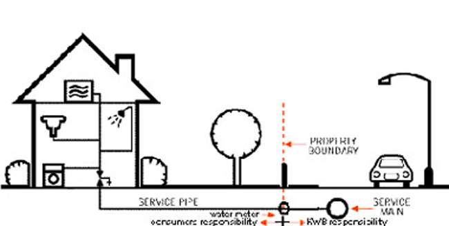If the leakage appear after the Property boundary is under KWB responsibility, and before the Property boundary (or at the left hand side of the image shown above), is under the consumer responsibility. |